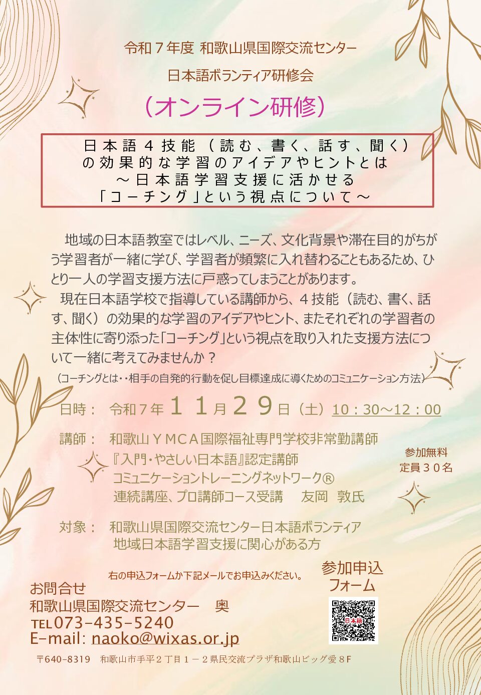 2025.11.29(土)10:30~12:00 和歌山県国際交流センター日本語ボランティア研修会(オンライン)