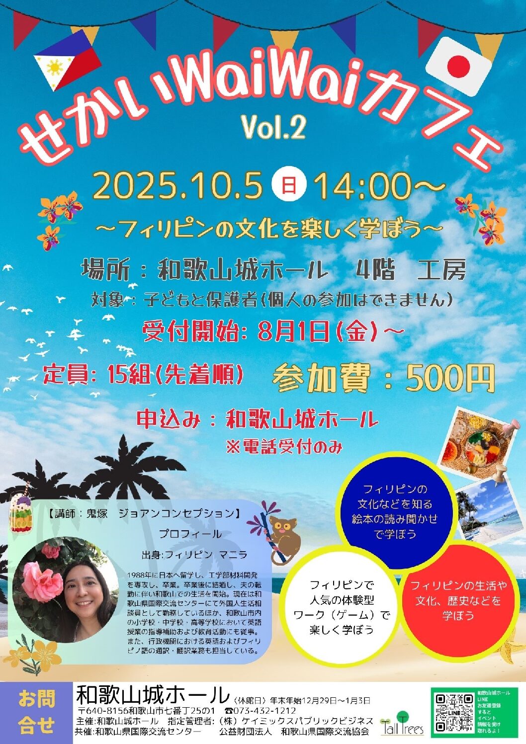 「本イベントは、直接、和歌山城ホールまで電話でお申し込みください(先着順)。 ◎和歌山城ホール TEL:073-432-1212 なお、本イベントの参加対象は子どもとその保護者となります。子どもだけ、大人だけなどの単独で […]