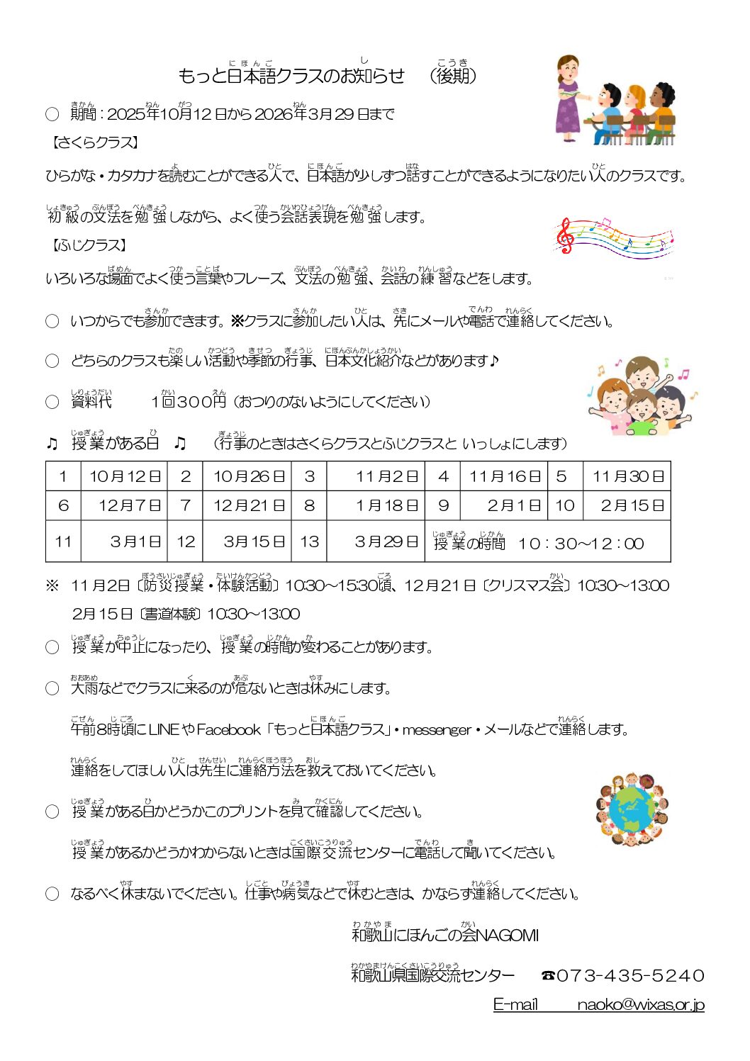 令和7年度和歌山県せいかつにほんご教室(オンライン)第2タームチラシ