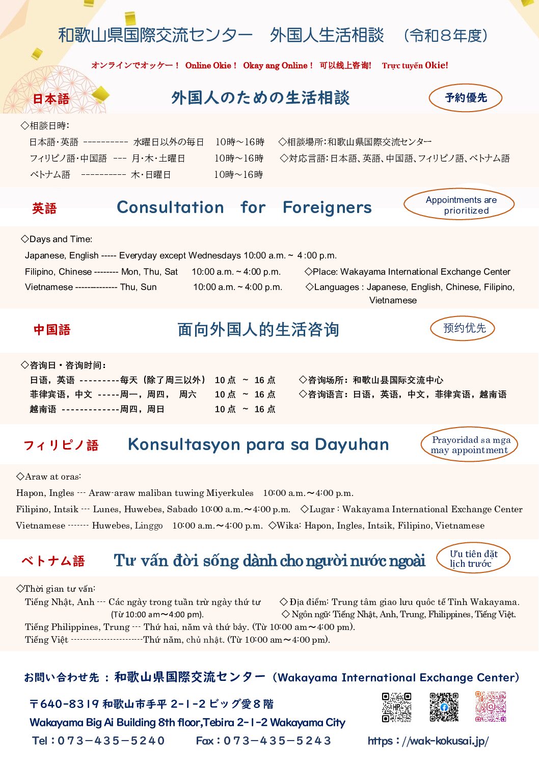 . 令和8年度版の外国人生活相談のチラシが新しくできました。 相談内容や対応言語などを掲載していますのでぜひご覧ください。 あわせて、外国人の方を対象とした無料法律相談も実施しています。 在留資格や労働、生活に関するお困 […]
