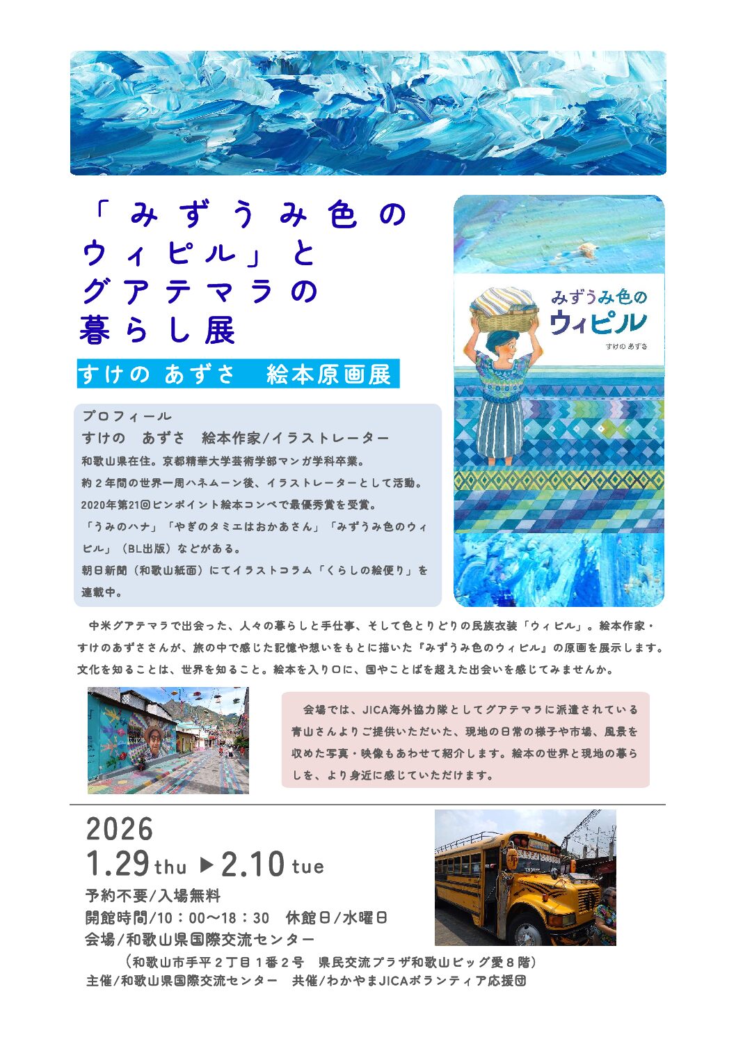 「みずうみ色のウィピル」とグアテマラの暮らし展 絵本原画展・トークイベントの開催のお知らせ